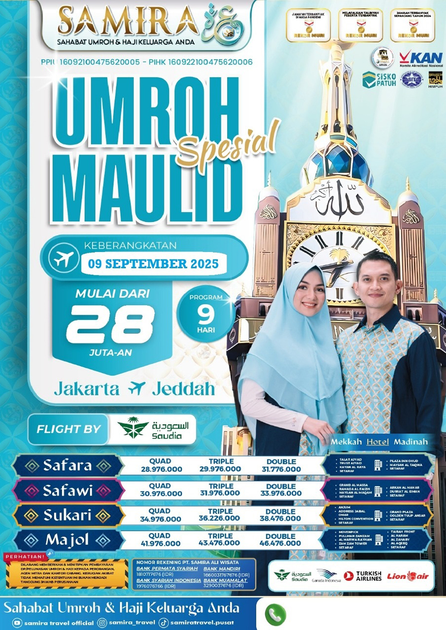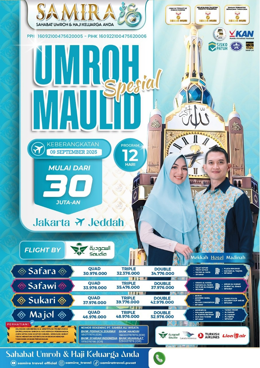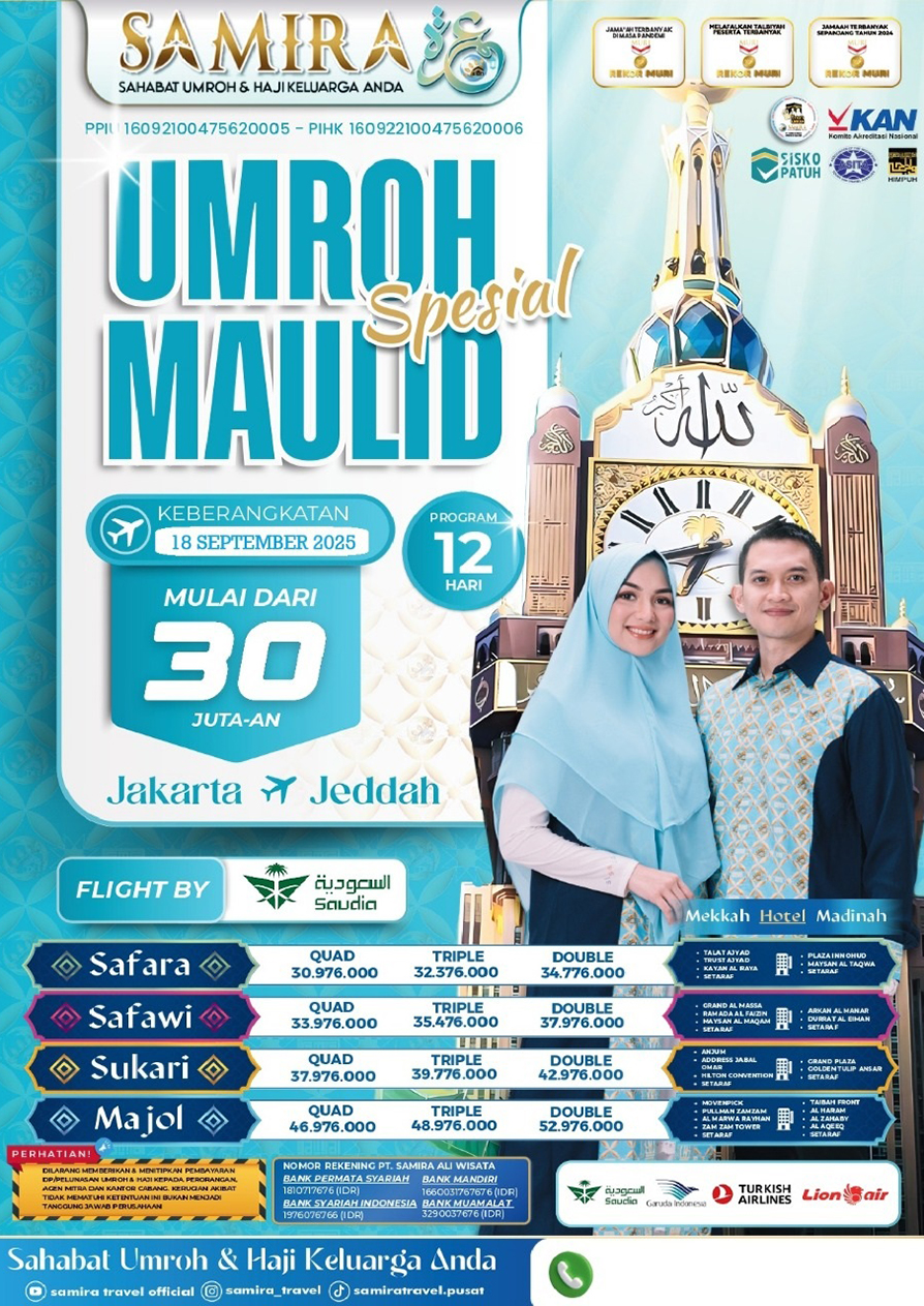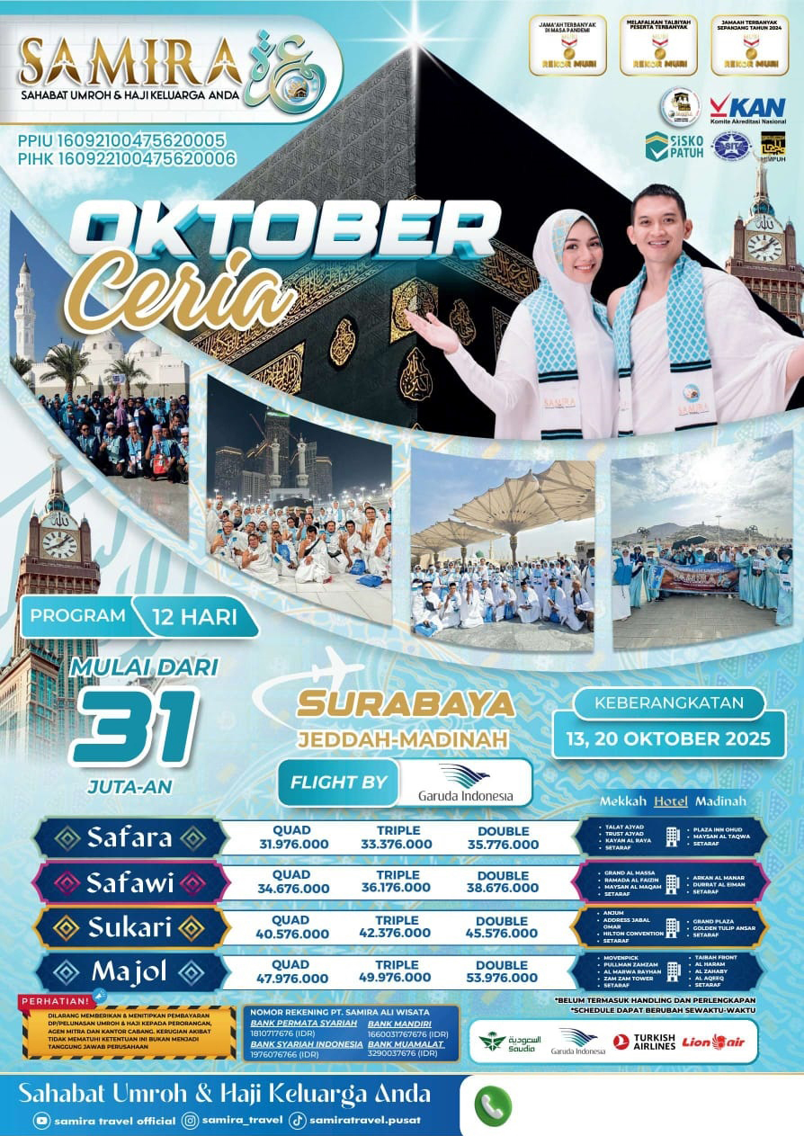 Dengan keistimewaan-keistimewaan tersebut dibawah, Biro Haji Umroh kami "Samira Travel" siap menjadi mitra terpercaya bagi para calon jamaah yang ingin menjalankan Ibadah Haji atau Umroh dengan nyaman dan penuh keberkahan. Memilih Biro Haji Umroh kami adalah langkah cerdas dalam meraih momen Ibadah yang berharga.